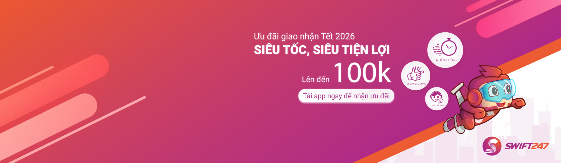 May là em được đứa bạn mách dùng thử dịch vụ giao hàng Swift247, vận chuyển xuyên Việt siêu tốc từ Hà Nội - Đà Nẵng - Sài Gòn trong ngày, không tăng giá, lại còn ƯU ĐÃI hoạt động xuyên suốt trong cả mùa Tết.